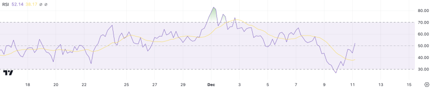 HNTs Relative Strength Index (RSI) is currently at 52, a decline from over 70 earlier in December when its price experienced a sharp surge. This drop indicates reduced buying momentum compared to the earlier overbought conditions.