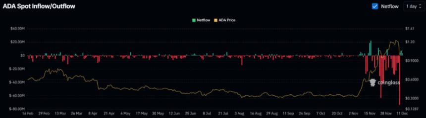 The spot outflow/inflow stats show exchanges have witnessed a staggering $185.89 million ADA outflows since early December.