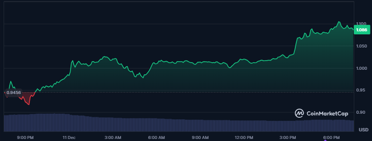 Cardanos native token jumped from a daily low of $0.9182 to the $1.1049 peak. That translated to an impressive 20.82% daily surge.