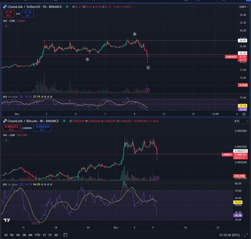 LINK is trading for $23.65 at the of writing, up 12.2% in the last 24 hours.