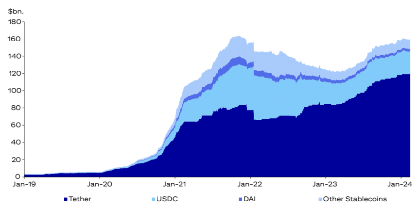 In fact, stablecoins seem to gain support even from the camp, which was initially afraid of crypto at all, which was big banks. Citi Wealth strategists emphasized in a recent research report that stablecoins “could end up reinforcing the U.S. dollars dominance,” adding further that activity has reached record highs, with $5.5 trillion in value across Q1 2024.