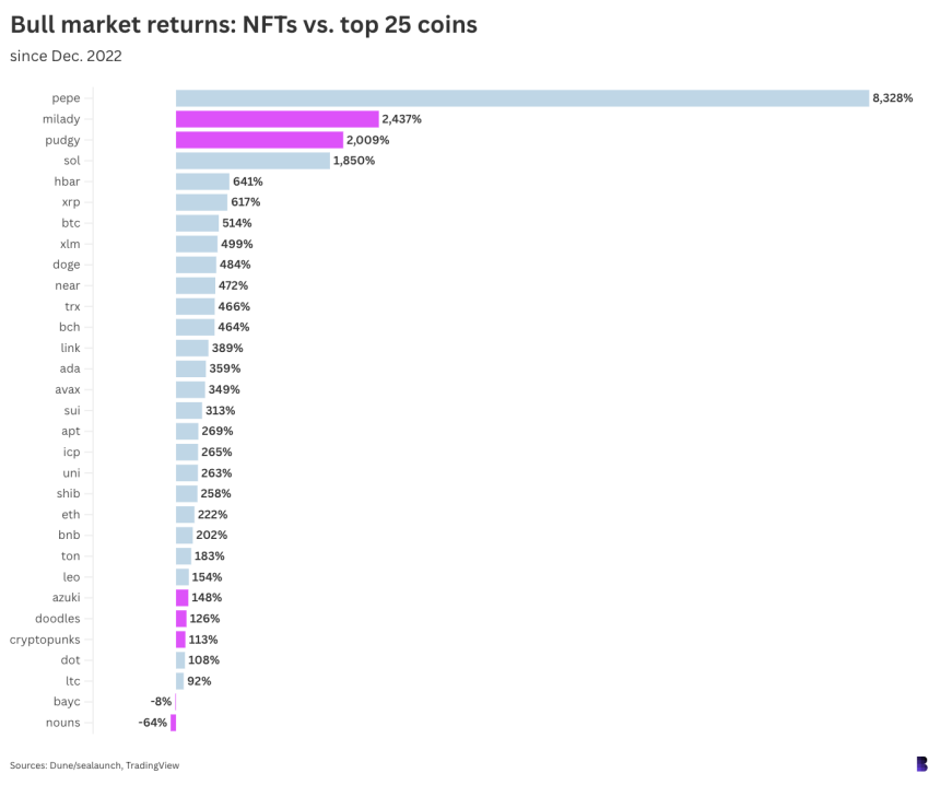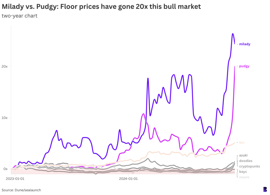 In any case, theres no denying that floor Miladys and Pudgys are now two of the best-performing crypto assets in this bull market.