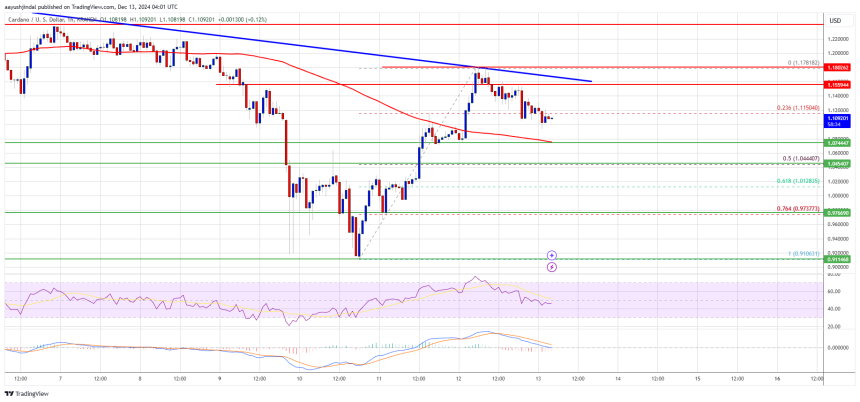If Cardanos price fails to climb above the $1.180 resistance level, it could start another decline. Immediate support on the downside is near the $1.10750 level.