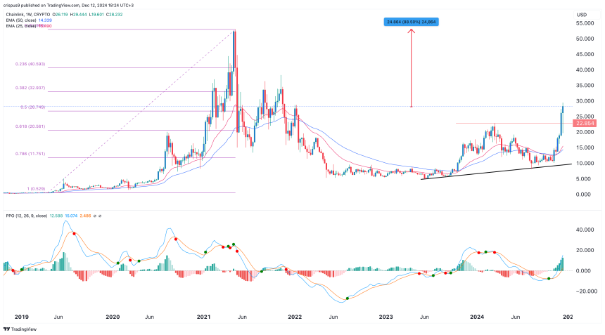 Chainlink price continued its strong rally this week, reaching a high of $29.4, its highest level since November 2021.