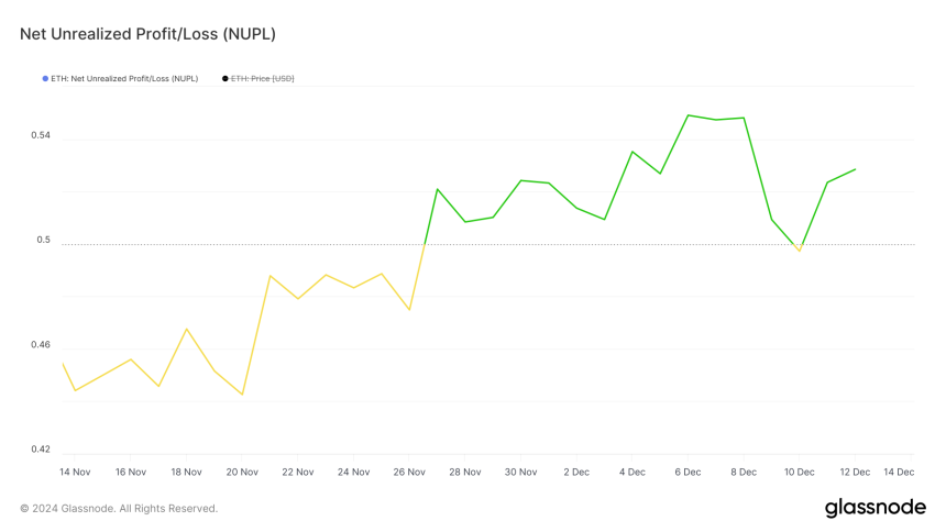This indicates that while investor sentiment is improving, it has yet to reach the levels of overconfidence associated with market tops. For ETHs price, this suggests room for further growth as sentiment strengthens, but it also highlights the absence of extreme optimism.