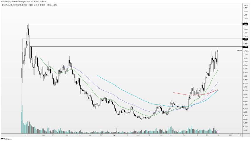 ENA, the 56th-ranked crypto asset by market cap, is up more than 8x in the past three months and is trading at $1.18 at time of writing. Its also up more than 1% in the past day.