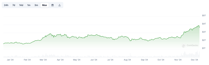 Total Cryptocurrency Market Cap in 2024. Source: CoinGecko.