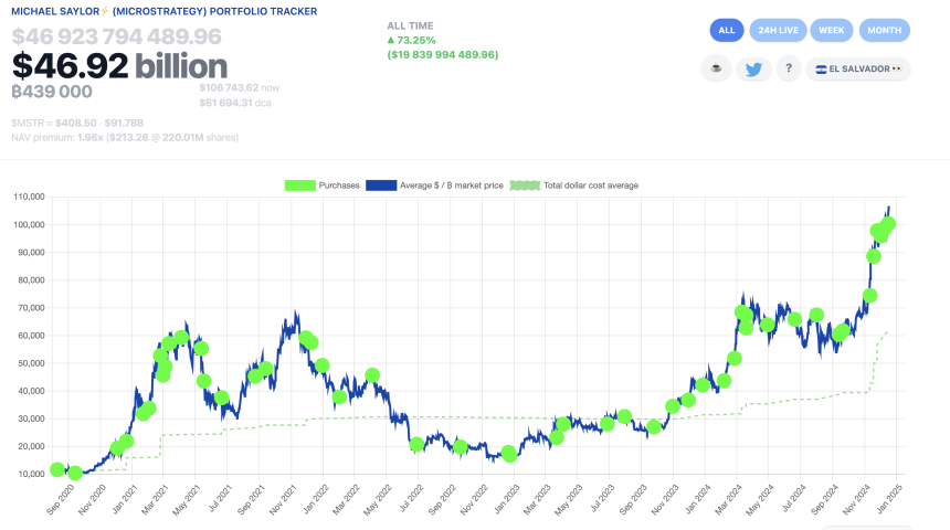 With a remarkable holding of 439,000 Bitcoin, valued at approximately $46.92 billion, the company now owns over 2% of the total Bitcoin supply.