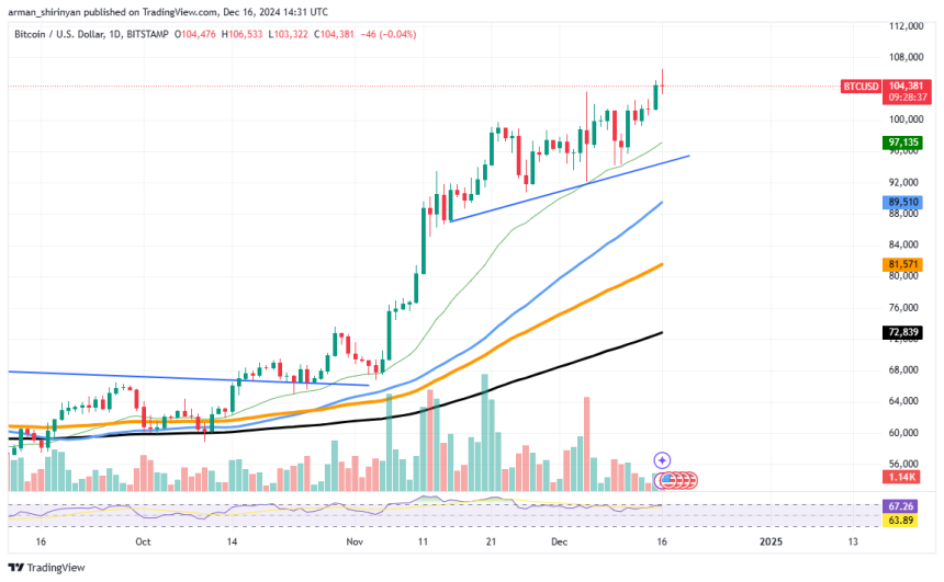 Bitcoin has solid support on the downside close to the $98,000 mark, where buyers have defended important levels in the past. If a brief retracement happens, the 50 EMA on the daily chart, which is presently trading at about $97,000, will offer an extra layer of support for Bitcoin. The market as a whole has risen since Bitcoin's return to its all-time high, which has increased hope for altcoins.
