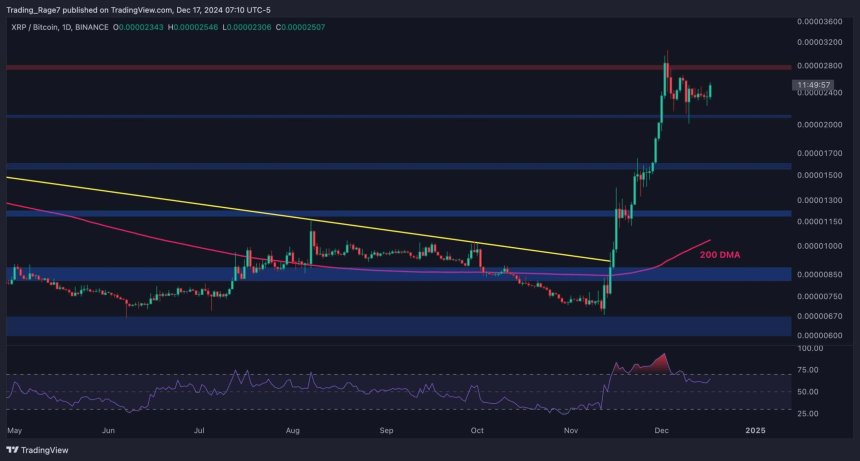 On the USDT paired chart, the price has been surging almost vertically since breaking above the 200-day moving average at the beginning of November. While the market has broken above several resistance levels, it is currently consolidating below the key $3 level.
