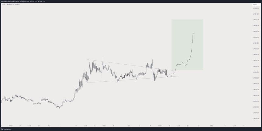 The trader also has his radar locked on the memecoin Floki (FLOKI). According to the trader, FLOKI appears to be trading in a symmetrical triangle pattern and is gearing up to shatter the structures diagonal resistance en route to new record highs.