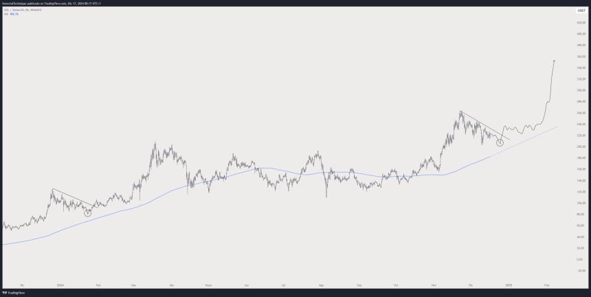 Looking at Solana (SOL), the trader sees the Ethereum rival bursting above its diagonal resistance to rally toward $300.