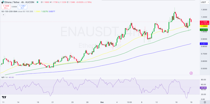 On the other hand, we see that the MFI is moderately low at 46.90, suggesting neither strong buying nor selling pressure. Ethena traded at $1.14 as of press time, representing a 2.59% increase over the last 24 hours.