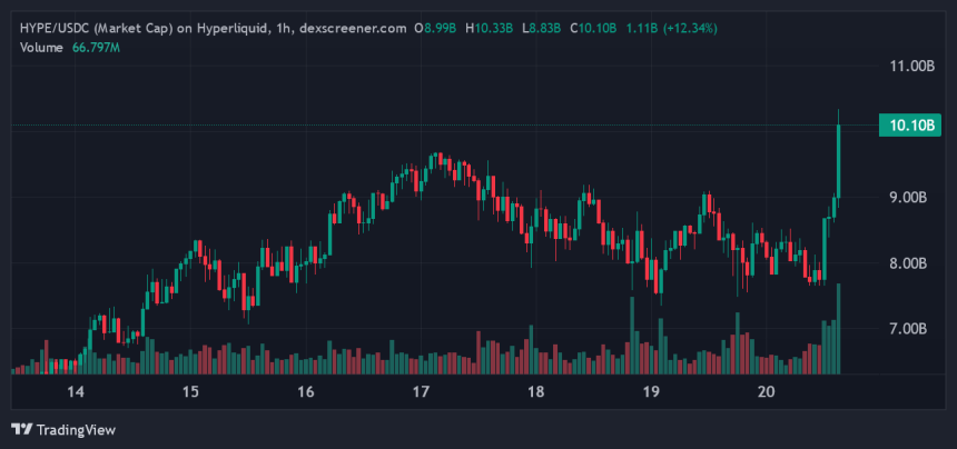 At press time, Hyperliquid stands at $10.2 billion and could potentially flip Polkadot in the coming days.