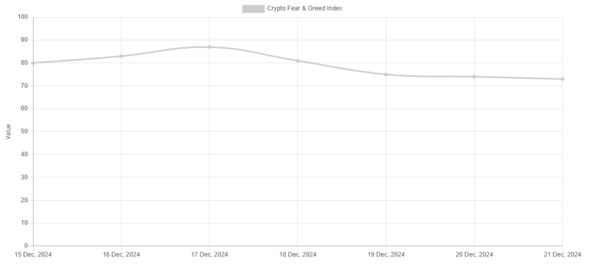 The Fear and Greed Index, a metric showing the overall sentiment in the crypto market toward BTC and the altcoins, went from deep ‘extreme greed’ of 87 down to just ‘greed’ – 73 in a couple of days. Such large differences only go to show the emotional part of the ever-volatile crypto market. Zooming out a bit, though, and its about perspective.