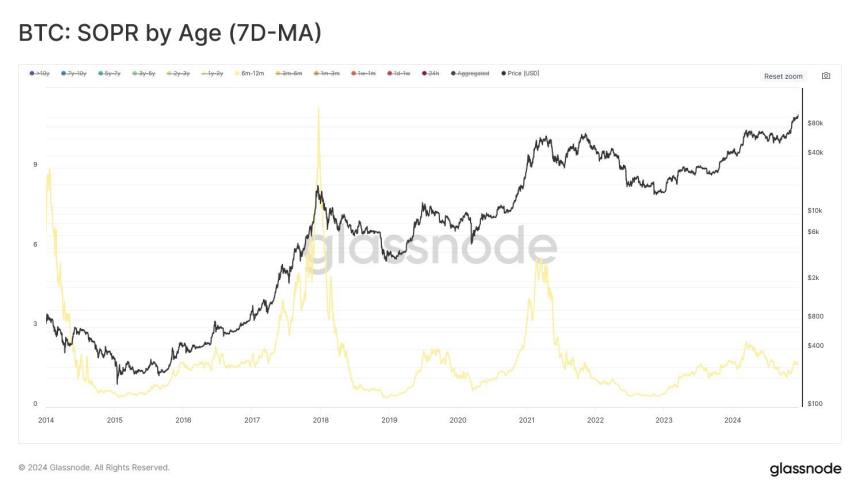 Mid-term Bitcoin holders, particularly those who have held BTC for six to 12 months, are leading the current profit-taking trend. These investors accumulated during prior cycles and are now seizing the opportunity to lock in gains.