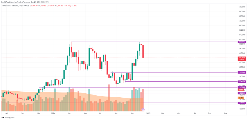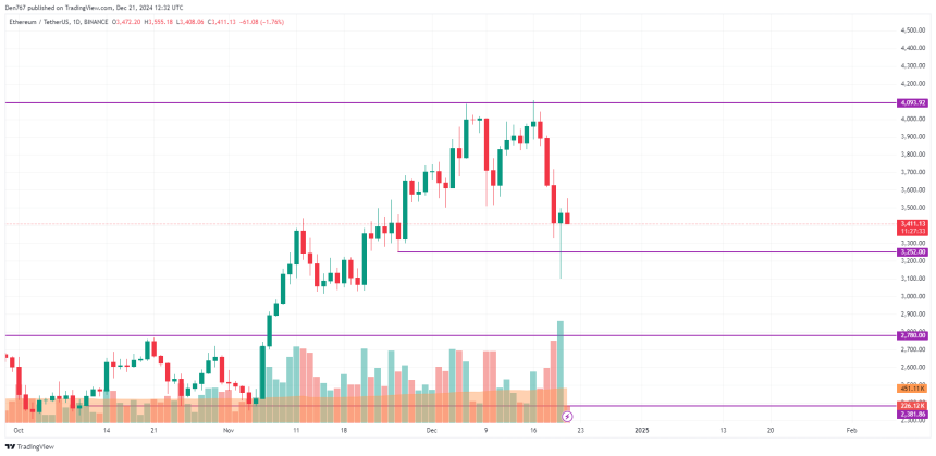 The rate of Ethereum (ETH) has dropped by 6.58% over the last 24 hours.