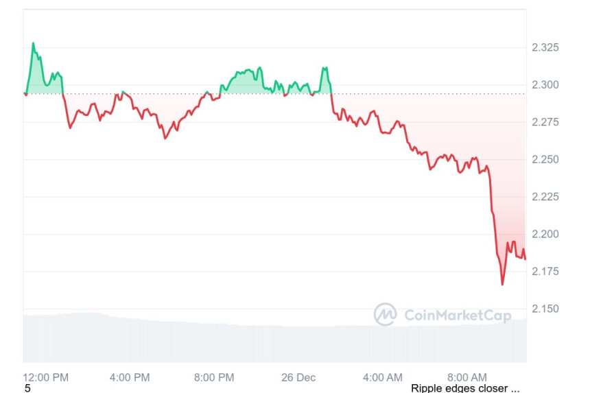 The price of XRP is currently pegged at $2.20, down 4.9% in the past 24 hours. Within this time frame, XRP touched a high price of $2.31, underscoring how much the resistance wall lies at the $2.30 level.