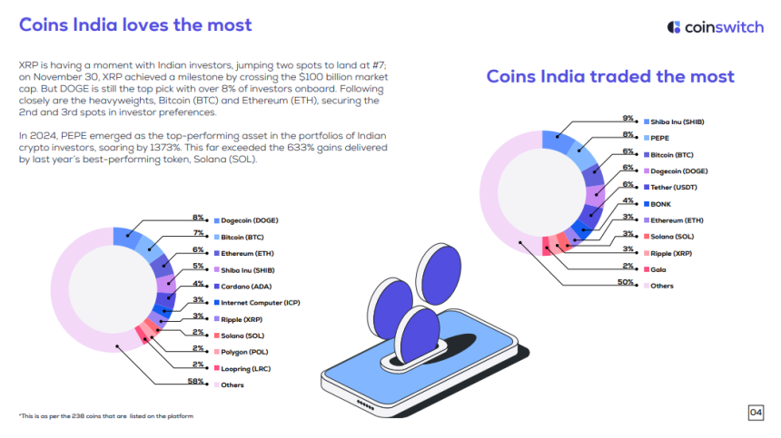Meanwhile, CoinSwitch customers were more inclined to hold Dogecoin than any other crypto asset this year. Per the data, 8% of CoinSwitch customers, representing 1.6 million users, held Dogecoin, making it the most-held token within the exchange.