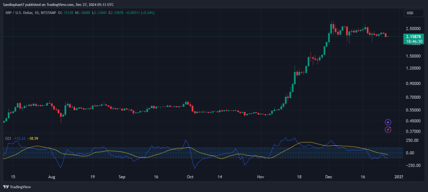 Meanwhile, amid the ongoing market turbulence, XRP appears to be in a comfortable position. While the token has defended the $2 support, currently changing hands at $2.15, its Commodity Channel Index (CCI) now stands at -112, suggesting an undervalued position.
