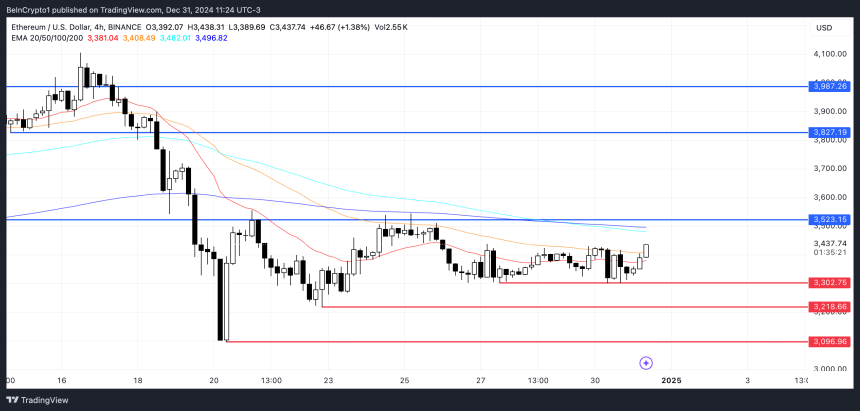 Ethereum (ETH) price is up over 3% in the last 24 hours, showing signs of recovery as the year ends. Unlike Solana and Bitcoin, which reached new all-time highs in 2024, ETH fell short of achieving this milestone.