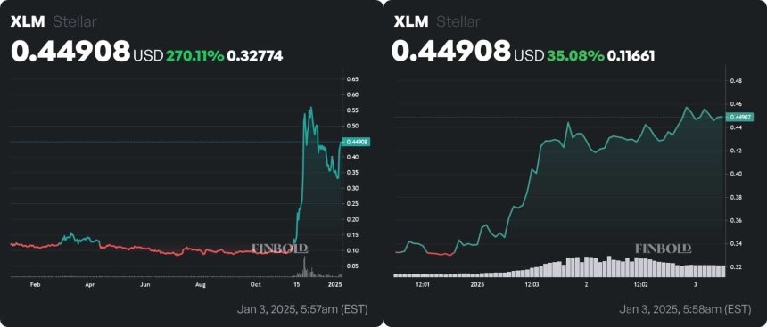 Stellar Lumens (XLM) experienced an impressive 270.11% move to the upside throughout the course of 2024. The cryptocurrency reached a yearly high of $0.5592 on December 2 — however, it saw a pullback earlier than most cryptocurrencies did — dropping to $0.3312 by the close of the year.