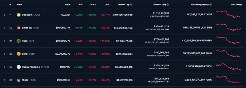 This broader market dip also affected memecoins, known for their high volatility. On average, memecoins dropped by about 18%, with Pepe coinsuffering a crash of 15% over the week.