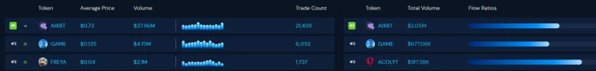 Top AI agents saw the most active trading due to their well-established liquidity.