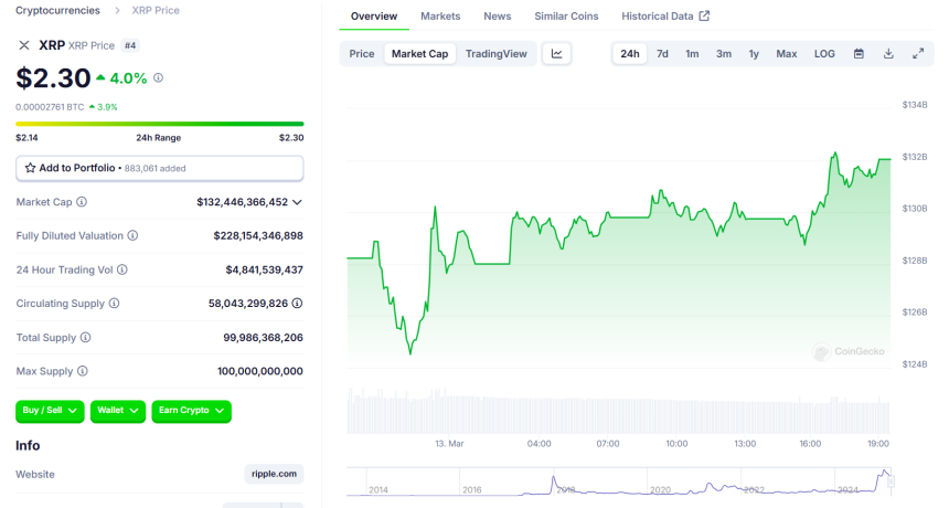 The filing came shortly after Franklin filed an S-1 registration form with the SEC for its proposed investment product focused on XRP, the fourth-largest crypto asset by market capitalization. The digital asset surged 2% to $2.3 after the SEC filing surfaced, according to CoinGecko data.