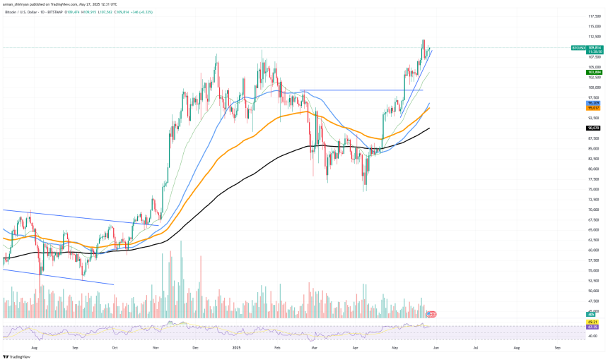 The asset's recent price action indicates strong underlying momentum, according to an analysis of the Bitcoin chart. The moving average convergence suggests a strong support structure that might serve as a catalyst for additional rallies. The bullish price pattern has given the market new life, as has the steadily increasing adoption among institutions and sovereign states.