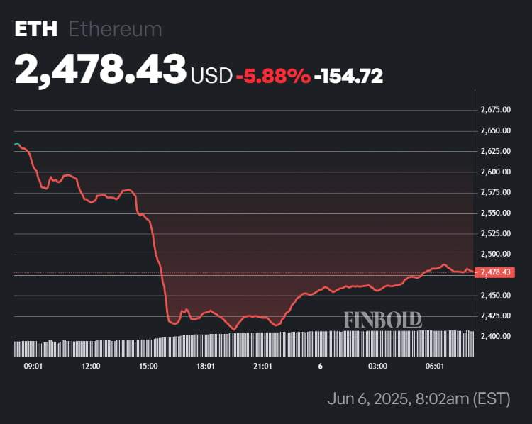 At press time, Ethereum is trading at $2,478, a -5.88% dip in the past 24 hours.