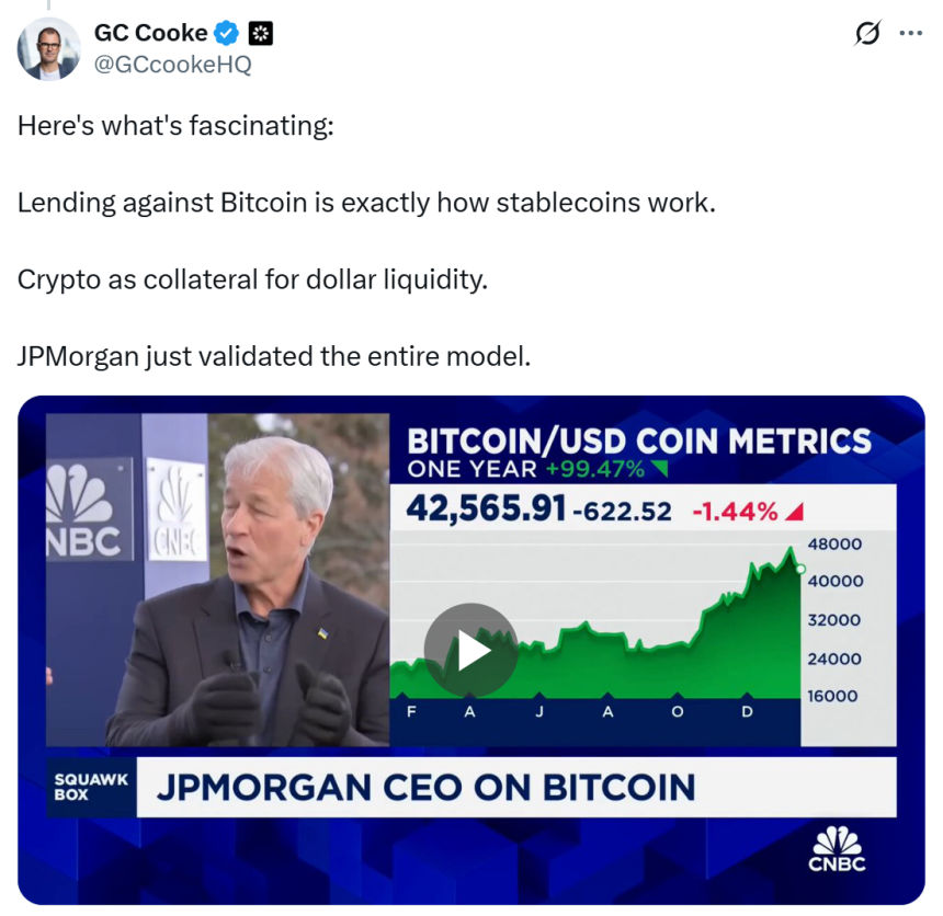 JPMorgan considering Bitcoin-backed loans. Source: GC Cooke