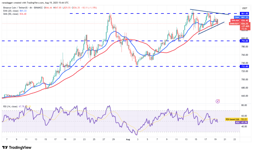 BNB (BNB) is facing resistance in the $861 to $869 zone, but a positive sign is that the bulls have not ceded much ground to the bears.