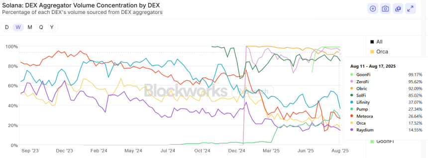 Almost all of prop AMMs volumes are routed from DEX aggregators, as per the below chart.