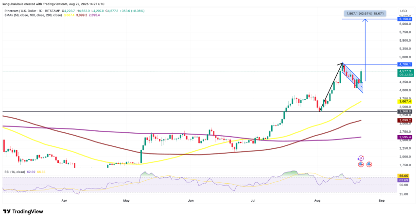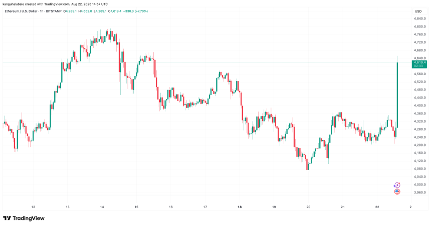 Ether‘s (ETH) price displayed strength at the Wall Street open on Friday, rising 13% to $4,788 following Federal Reserve Chair Jerome Powell’s Jackson Hole speech.
