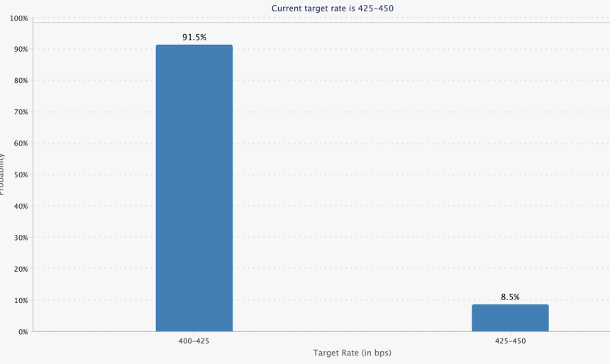 Interest rate cut odds for the Sept. 17 FOMC meeting have now jumped to 91.5% from 75% a day prior, according to the CME Group Fedwatch tool.