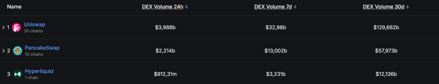 Decentralized exchanges by trading volume | Source: DefiLlama