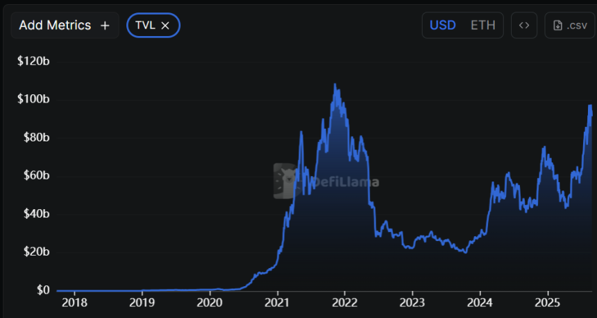 With $91.5 billion in total value locked, Ethereum remains the dominant player in decentralized finance, including stablecoins, DEX volume and inflows. Source: DefiLlama