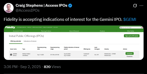 Geminis move follows a recent wave of crypto-related listings. In June 2025, stablecoin issuer Circle (the firm behind the USDC token) conducted a blockbuster IPO on the NYSE.