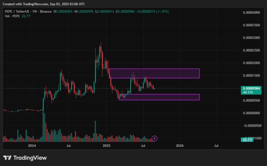 PEPE price prediction discussions intensified as PEPE lingered around the high-$0.000009s in intraday feeds, with the market determining if this is a clean recovery or a deeper break.