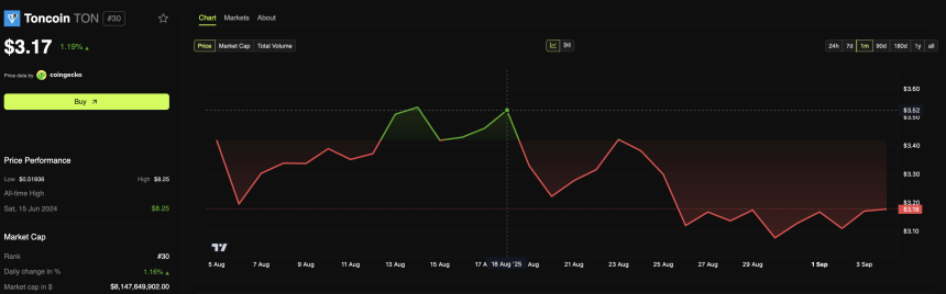 On the market side, Toncoin is trading around the $3.1–$3.4 range, well below its recent short-term peak. Typically, the emergence of treasury funds and buyback programs helps reduce circulating supply and enhance holding sentiment, which could support a potential rally if substantial trading volumes confirm it.