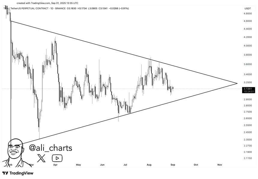 From a technical perspective, several analyses show that TON consolidates within a triangle pattern, often a precursor to major price movements. Analyst Ali notes that if a decisive breakout occurs, the price could swing as much as 50%.