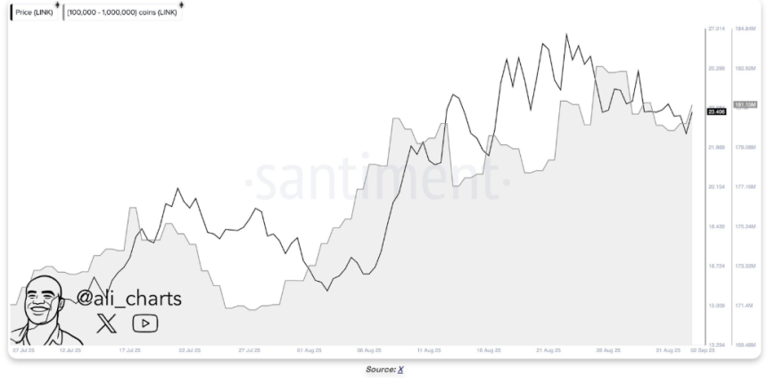 According to on-chain data analysis, the Chainlink network has attracted more whales during the past few days. For instance, Chainlink wallets, with an address balance of between 100k and 1 million coins, have loaded up more than 1.25 million LINK coins during the past week, thus increasing their total to 181.5 million coins.