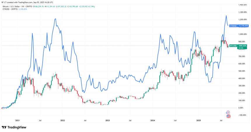 By TradingView - BTCUSD vs ETHUSD_2025-09-05 (5Y)