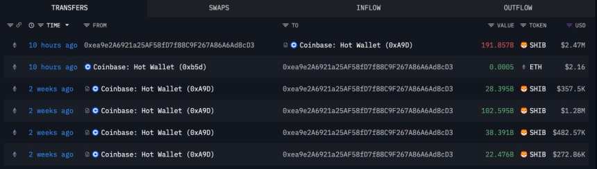 Over the past two weeks, whale wallets tied to Coinbase have been shuffling enormous amounts of Shib