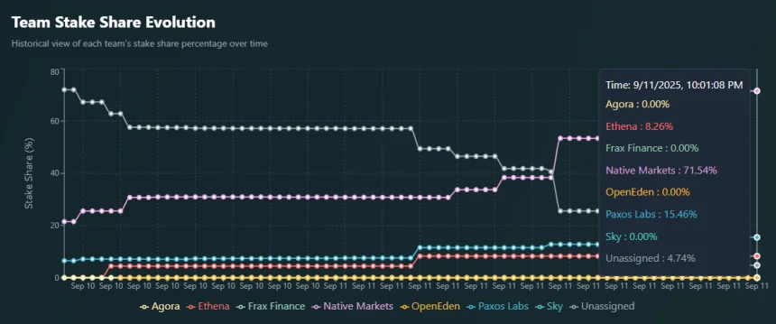As of September 11, Native Markets, led by Stripe, took off with the biggest share of validator power, rising to over 78%. The big lead turned into dominance as more validators signaled their most probable decision.