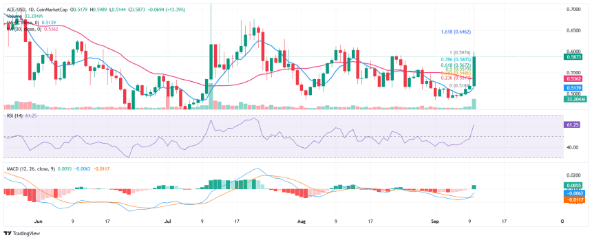 The rally comes after a volatile stretch in which ACE struggled near its all-time low of $0.4266 earlier this year.