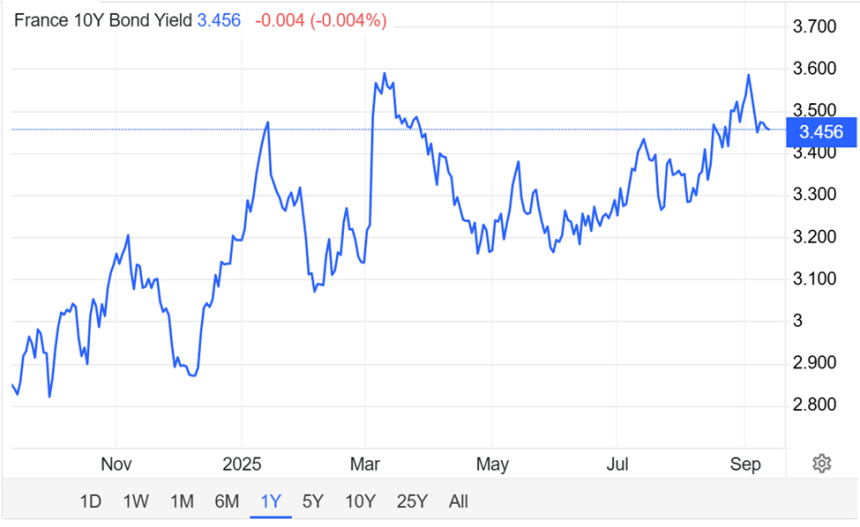 French 10-year bond yields have risen sharply in recent weeks, highlighting investor unease about the countrys record-high deficits and lack of fiscal room.