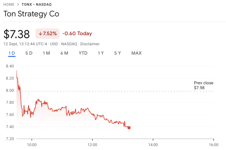 Since announcing its pivot to become a TON treasury company, its share price has fallen over 21% as enthusiasm for crypto treasury companies wanes.