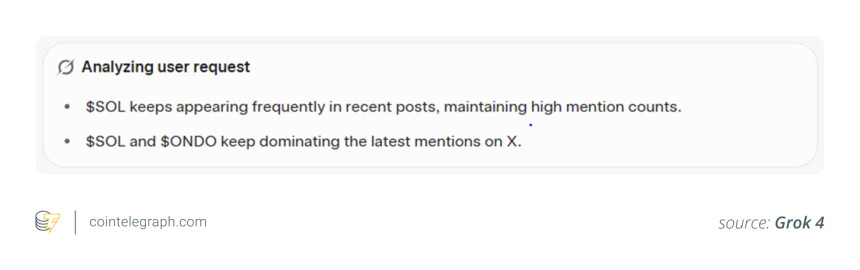 Grok 4 can analyze real-time X chatter, market data and onchain flows to highlight potential altcoin moves.